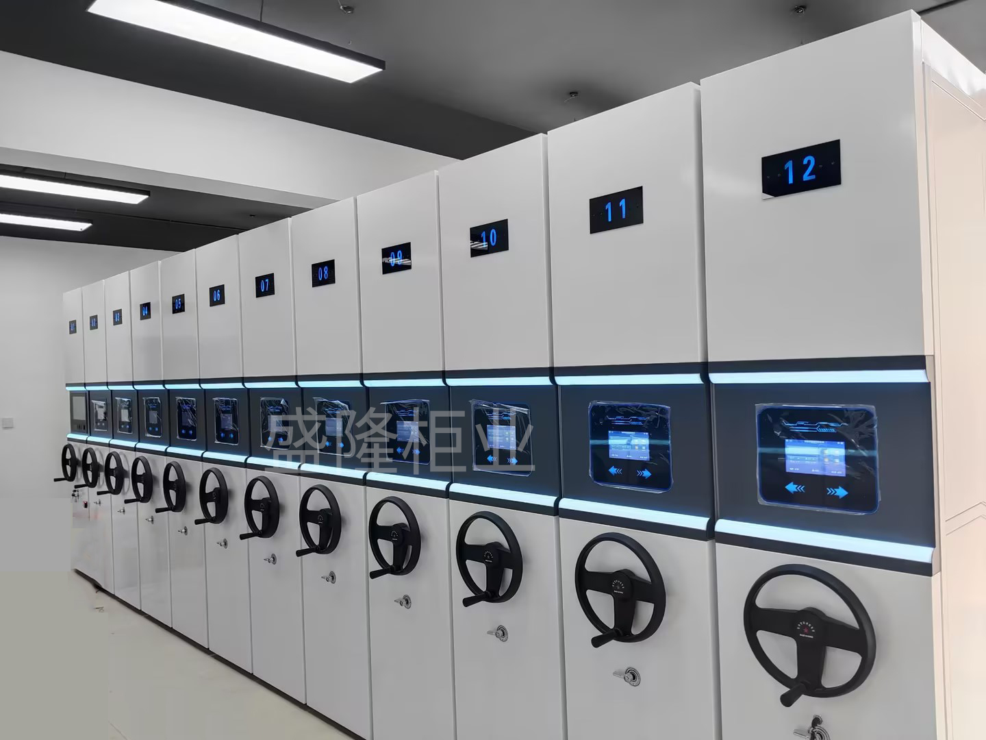金屬材質:優 質的移動密集柜通常采用高 質量的金屬制成,如冷軋鋼板、不銹鋼等,這些材料具有強度高、耐腐蝕、易清潔等特點。