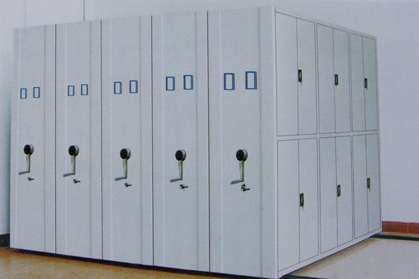 手搖式密集柜主要由軌道、架體、底盤、面板、門板、目錄卡及傳動裝置、防倒裝置、密封裝置九部分組成。